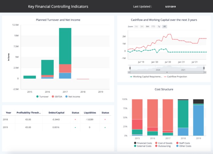 Saiba mais: https://neilpatel.com/br/blog/dashboard-o-que-e/, https://www.clicdata.com/pt/exemplos/financeiros/, https://blog.wittel.com/dashboards/